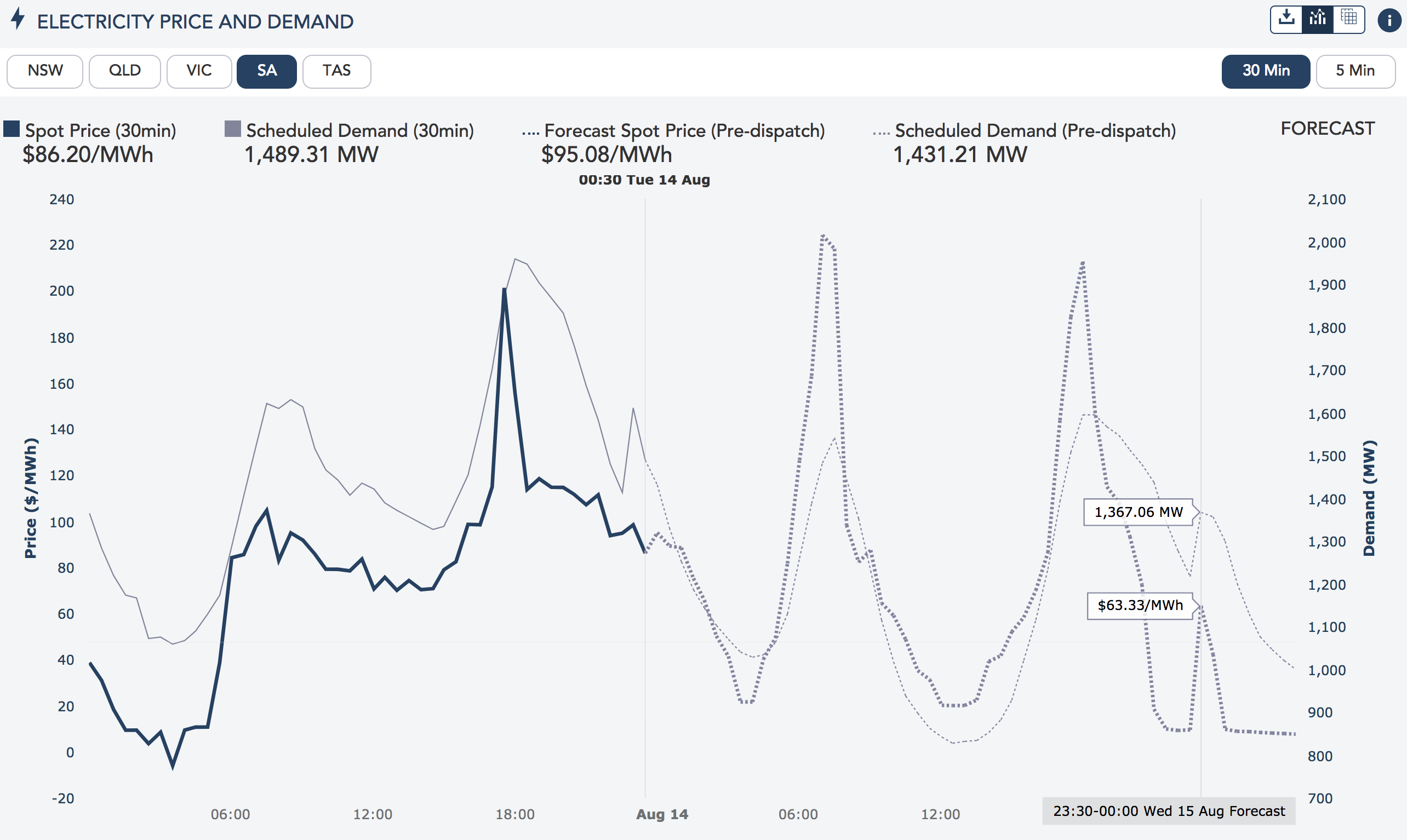 The MMSDM provides both actual data and forecasts for a range of variables - including prices, demand and electricity flows.