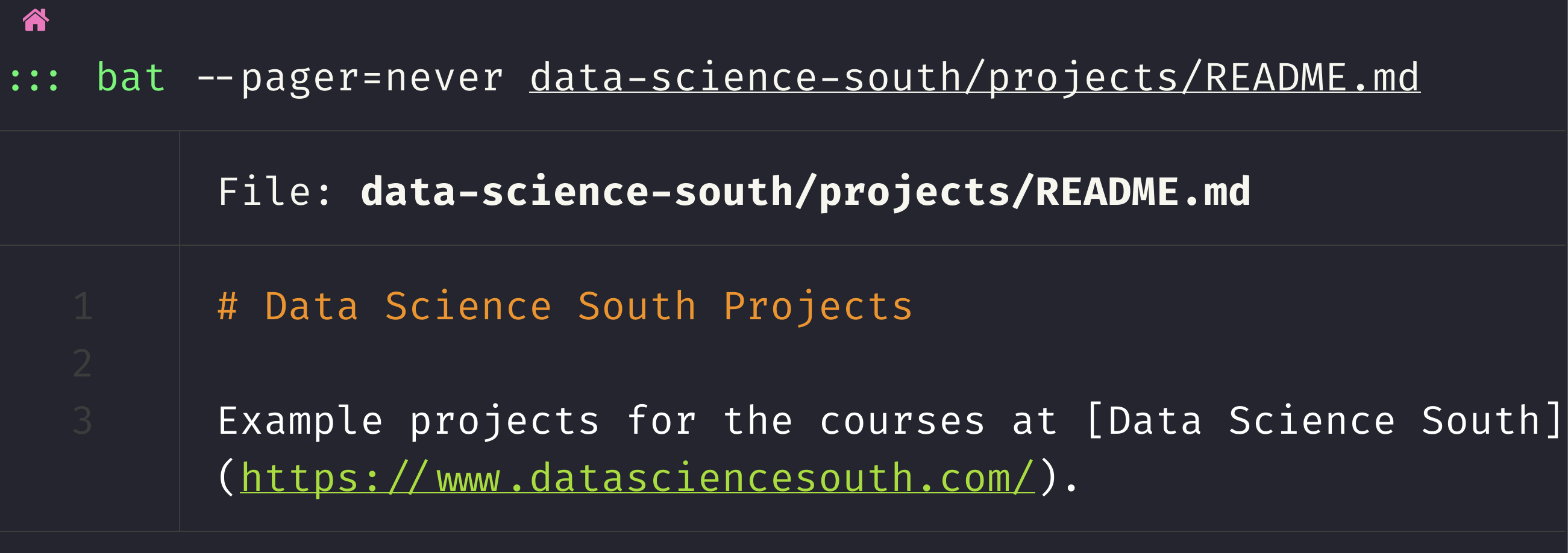 Tip - Customize the appearance with themes by using the –theme flag like bat --theme="TwoDark".