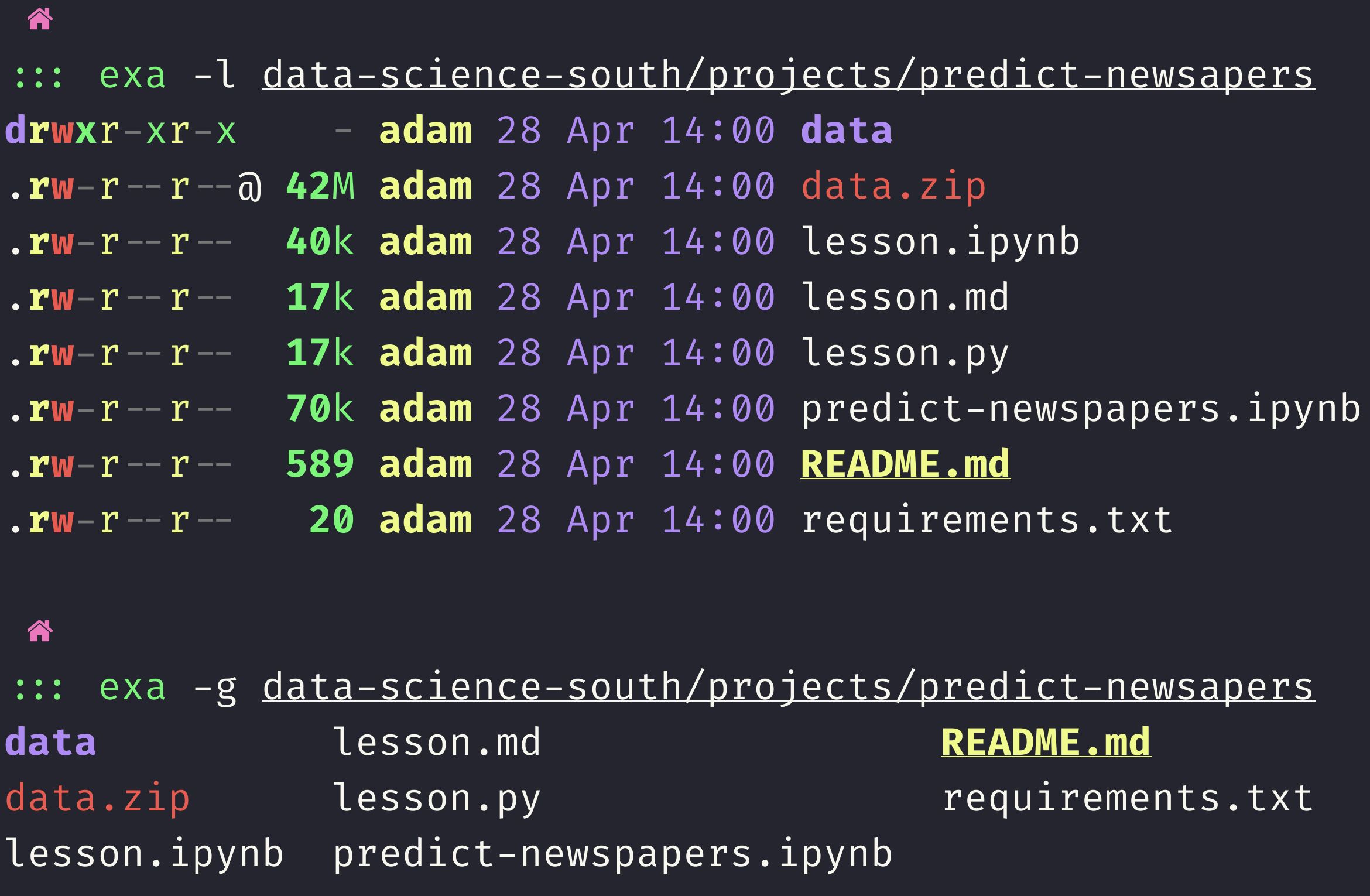 drwxr-xr-x - adam 26 Apr 20:25 data-science-south-data