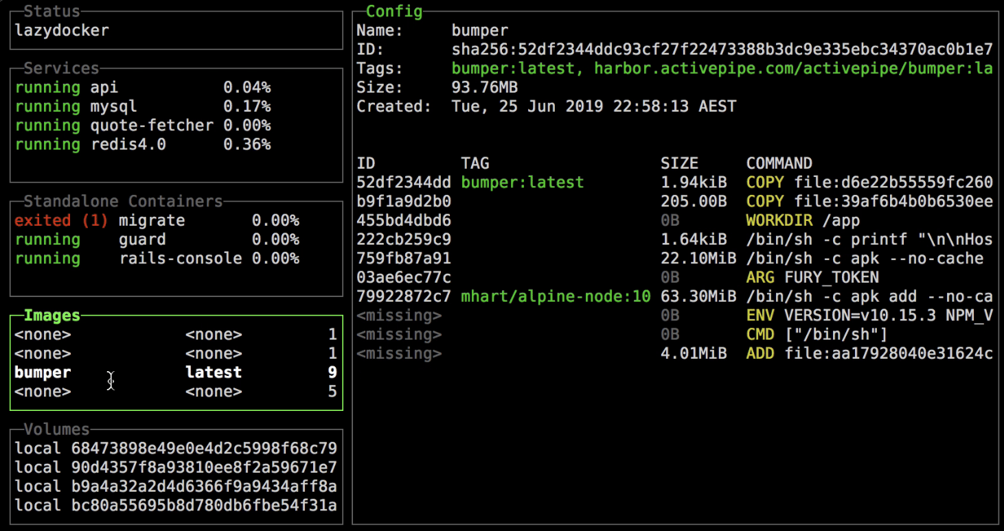 Lazydocker makes it easy to view, start, stop, and remove containers and images through a terminal UI. It can also provide a real-time overview of container status, logs, and resource usage.