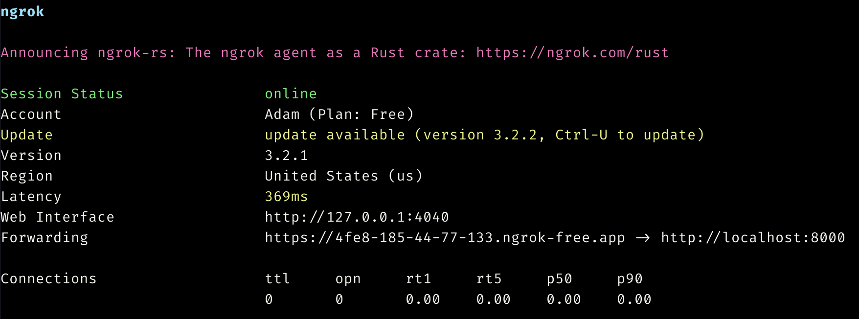 Tip - To expose non-HTTP services, use the ngrok tcp or ngrok tls.