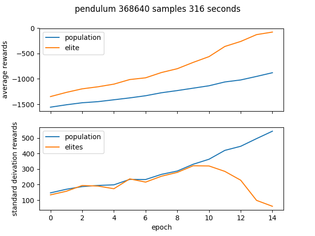$ python cem.py pendulum --num_process 6 --epochs 15 --batch_size 4096