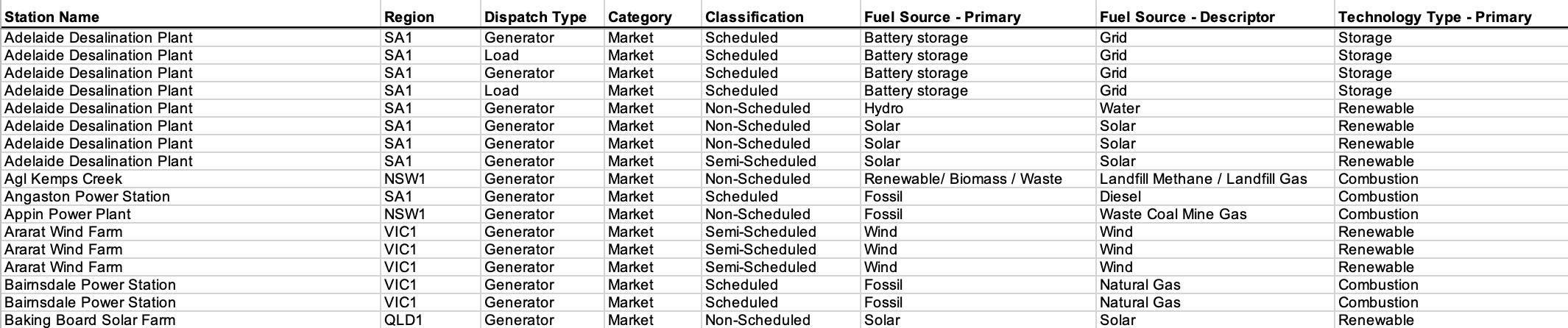 Both of these files are linked by a Dispatchable Unit Identifier (DUID), which identifies generating unit.